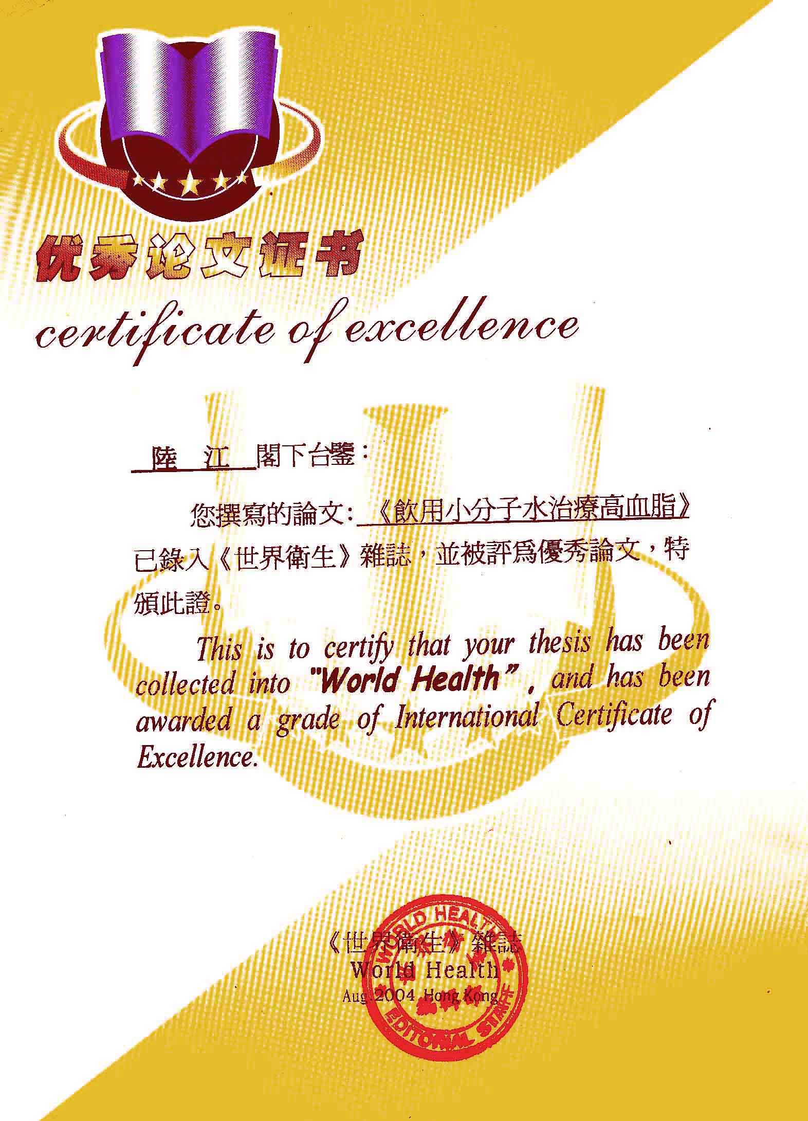 -----我是從事建筑的高工,本來沒有資格去攻克醫(yī)學(xué)難題,卻為了自身健康才扣響醫(yī)學(xué)的大門。由于我1990年患高血壓,因怕中風(fēng)才研究發(fā)明了離子水瓶,我把水處理成微小分子團(tuán)水,飲用后治愈了高血壓。便于1993年底送到三家省級(jí)醫(yī)院做臨床試用4個(gè)月。經(jīng)北京和廣西醫(yī)學(xué)專家鑒定:"降脂降壓效果好"," 能擴(kuò)大心腦動(dòng)脈流量,改善心腦電圖以及微循環(huán)","對治療心腦動(dòng)脈粥樣硬化、高血壓、高血脂有良好的醫(yī)療保健作用。""產(chǎn)品的技術(shù)性能和療效達(dá)到了同類產(chǎn)品的國內(nèi)領(lǐng)先水平,經(jīng)廣西醫(yī)學(xué)科學(xué)情報(bào)研究所檢索,未見國外有類似報(bào)道。"中國醫(yī)學(xué)科學(xué)院張正國教授從美國國立醫(yī)學(xué)圖書館數(shù)據(jù)庫存Medline檢索英俄文資料,均未見類似報(bào)告。2000年上市后,我為了對消費(fèi)者負(fù)責(zé)而繼續(xù)觀察研究,一直通過《信譽(yù)卡》和《質(zhì)量跟蹤調(diào)查書》向患者承諾療效,請用戶使用6個(gè)月后反饋效果。和脂壓患者飲用2至5個(gè)月內(nèi),消除癥狀,停服藥物,血壓正常;冠心病患者飲用3~5個(gè)月逐漸減輕至消除心絞痛、房顫等癥狀,不再服藥,飲用1年左右心電圖正常,經(jīng)冠脈造影掃描無明顯狹窄,表明冠心病痊愈。大量患者還反映許多衰弱器官被修復(fù),讓前列腺增生、慢性咽喉炎、慢性氣管炎、支氣管炎、慢性胃炎、腸炎和膽囊炎等不藥而愈;2型糖尿病患者是因?yàn)橐葝u衰弱致病,飲用該水半年至一年,逐漸減藥至停藥,血糖尿糖正常,真正治愈2型糖尿病。中風(fēng)后遺癥患者飲用六七個(gè)月,可逐漸減輕至消除肢體和語言障礙,表明飲用該水能讓壽命很長的神經(jīng)元細(xì)胞逐漸修復(fù),奇跡般地恢復(fù)肢體和語言功能。飲用后還使胸腺和脾臟兩個(gè)重要的免疫器官被修復(fù)和增強(qiáng),產(chǎn)生免疫細(xì)胞多,提高了免疫力,使人不生病或少生病。自此, 飲用微小分子團(tuán)水創(chuàng)造了攻克冠心病、高(低)血壓和糖尿病三大醫(yī)學(xué)難題的奇跡。人們對此感到不可思議,但實(shí)踐是檢驗(yàn)真理的唯一標(biāo)準(zhǔn)。
